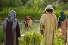 Then he bent down to the water and lifted a some water in one cupped hand.