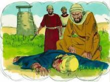 He indicated the follower portraying the servant, and said, "Beating on his fellow service."