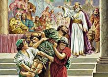 After his opponents leave, Jesus addresses the crowd telling a parable comparing the realm of the skies to a man, a king.