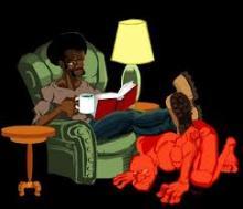 He pause, doing a little pantomime of someone who was hungry enjoying their food.